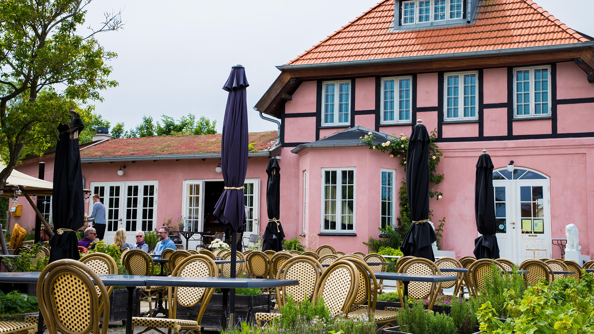 Ett mysigt stadsliv med både caféer och gallerier i Tisvildeleje stad